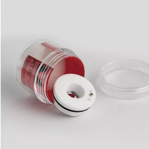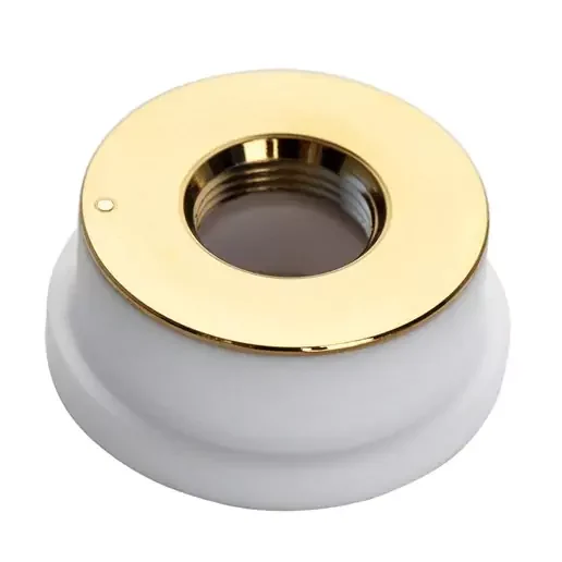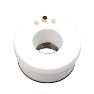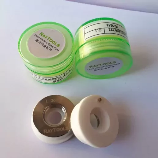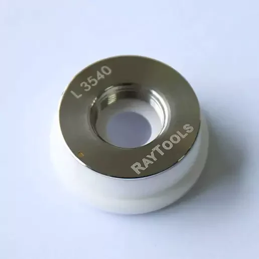 سرامیک لیزر فایبر (laser ceramic ring)، از قطعات مصرفی دستگاه برش لیزر که در سر هد لیزر قرار میگیرد. از وظایف این دستگاه میتوان به نگهداری نازل برش بر روی هد دستگاه لیزر، برقراری ارتباط الکتریکی، محافظت از نازل هد لیزر در برابر حرارت و انتقال جریان هوا را نام برد.اگر حلقه سرامیکی آسیبدیده باشد، ممکن است به هد لیزر شما آسیب وارد شود یا بیش از حد گرم شود؛ بنابراین برای جلوگیری از آسیبدیدگیهای احتمالی هد لیزر در یک دوره زمانی (3 تا ۶ماهه) نیاز است که سرامیکی هد لیزر تعویض شود. سرامیکی هد لیزر دارای اتصالات الکتریکی است که برای تنظیم ارتفاع هد لیزر استفاده میشود این قطعه سیگنالها را از سر نازل دریافت و به هد منتقل میکند و از برخورد هد به قطعه کار جلوگیری میکند؛ بنابراین اگر ورق شما سطح مسطحی نداشته باشد و خم و یا گرد باشد، هد دستگاه بهصورت اتوماتیک فاصله را کم و یا زیاد میکند .